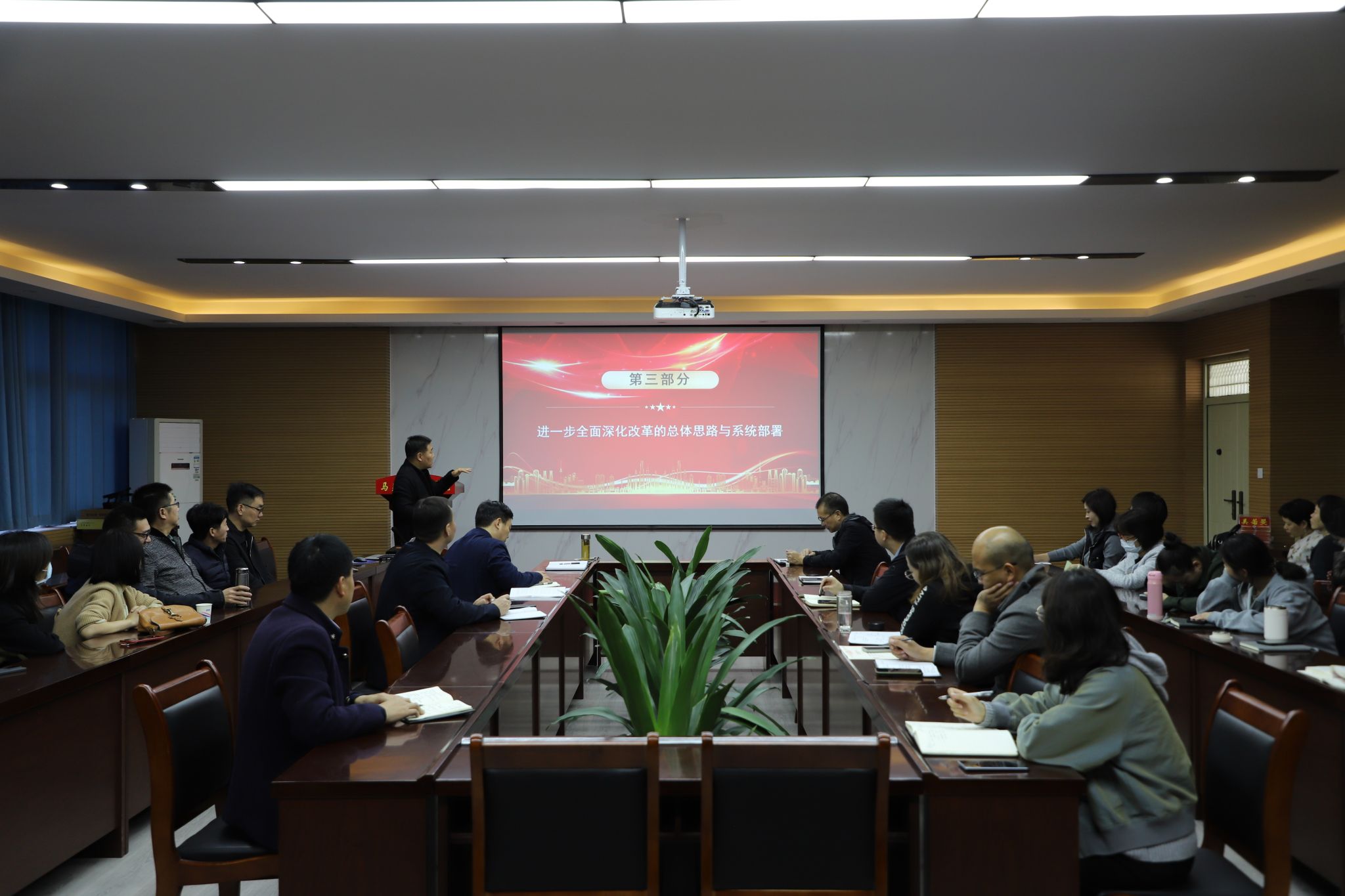在3511会议室举办党的二十届三中全会精神宣讲报告会,学校学校党的二十届三中全会精神宣讲专家团成员、学院副院长丁建波作了题为《绘就进一步全面深化改革新蓝图》的宣讲报告,学院班子成员、全体教职工参会聆听了宣讲报告。会议由学院党委书记李继周主持。