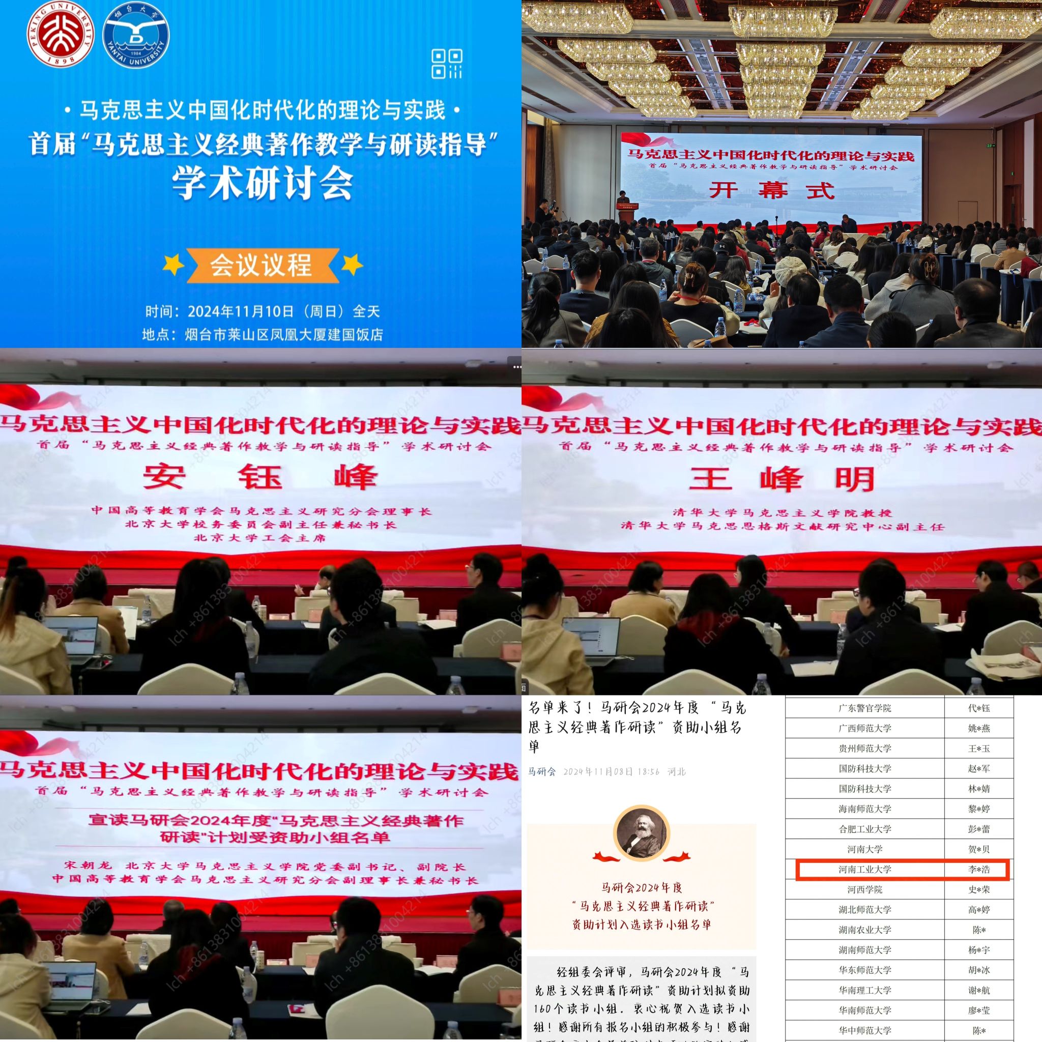 化学化工学院应用化学专业2023级本科生李昌浩、左孟昊、刘广屹、兰绍伟、张富田等同学一同参会,与来自全国高校的师生共同交流学习。经中国高等教育学会马克思主义研究分会2024年度“马克思主义经典著作研读”资助计划组委会评审,秦步焕老师为指导教师,李昌浩同学为组长的读书小组成功入选马研会2024年度“马克思主义经典著作研读”资助计划。