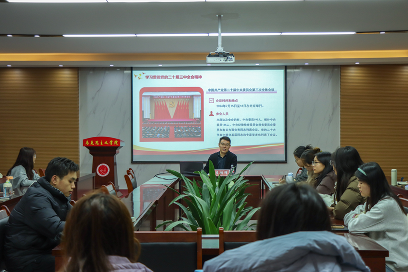 李朝锋老师围绕“怎么看、怎么干、怎么抓”深入剖析党的二十届三中全会精神,着重阐述了新时代背景下全面深化改革所取得的重大成就,紧密结合时事动态,以深入浅出、通俗易懂的方式,对进一步推动全面深化改革的战略部署进行解读,明确学习好贯彻好全会精神是当前和今后一个时期全党全国的一项重大政治任务,并鼓励大家将全会精神内化于心、外化于行,切实将个人思想与行动统一到党中央的决策部署上来,为个人成长与学校发展注入强劲动力。