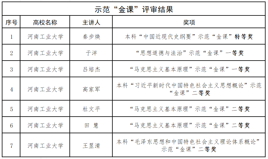 在全省高校思政课优秀课程资源评审中获评“示范课程”3门,示范“金课”特等奖1项、一等奖2项,二等奖4项。