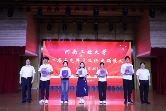 党委书记李继周作总结讲话。他对本次大赛的成功举办和脱颖而出的获奖团队表示热烈祝贺,对全体参赛同学的精彩表现给予高度评价。他指出,本次大赛不仅是思政课教学改革创新的成果,也是学校立德树人工作的又一平台,是同学们感悟经典、展示自我的舞台。全校广大同学积极参赛的极大热情展现出对马克思主义的浓厚兴趣和积极追求,通过诵读经典,不仅加深了对马克思主义的理解,更激发了广大同学对知识的渴望、对真理的探索欲望和追求。本次大赛不仅是一场思想的盛宴,更是一次精神的洗礼,让大家在经典的力量中汲取了前行的智慧与勇气,得到思想启迪和精神升华。他希望同学们以本次马克思主义经典诵读大赛为契机,在今后的学习、工作和生活中,继续深入学习马克思主义经典著作,真正把读经典当作生活习惯和精神追求,以经典砥砺思想,增进智慧,坚定理想信念,指导学习实践,努力成长为德智体美劳全面发展的社会主义建设者和接班人,为实现中华民族伟大复兴的中国梦贡献自己的智慧和力量。