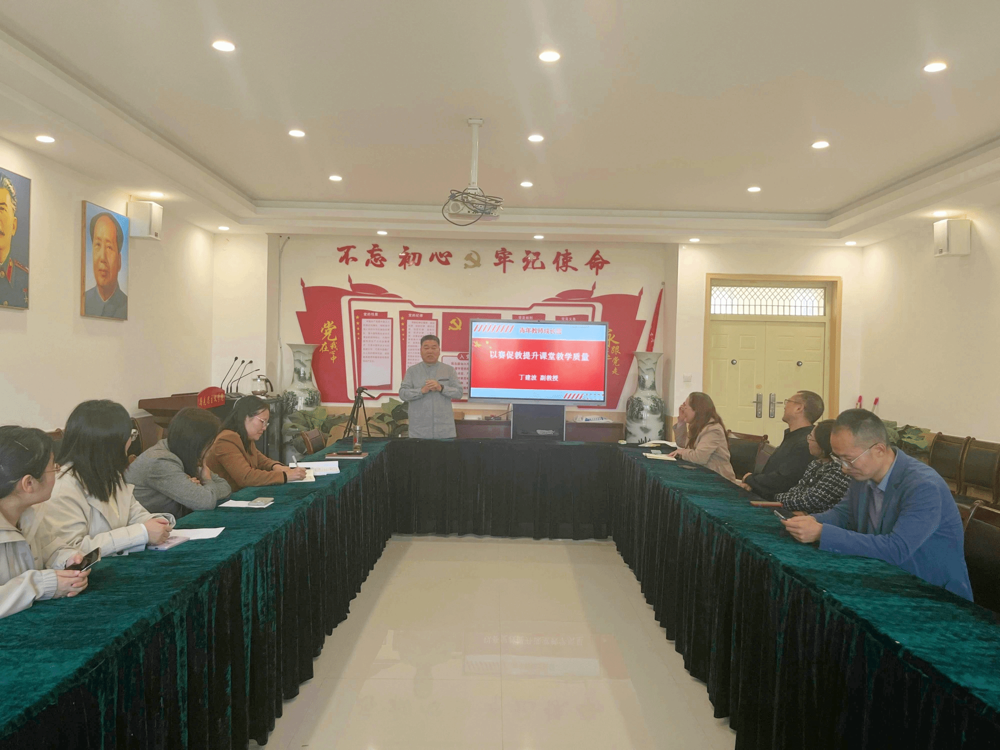 教工第一支部“双带头人”支部书记工作室“青年教师成长营”2025-2026学年开营仪式在3512会议室顺利举行。活动邀请学院副院长丁建波作主题分享,并围绕“以赛促教提升课堂教学质量”主题开展交流探讨,活动由支部书记张伟青主持,支部全体成员参加。