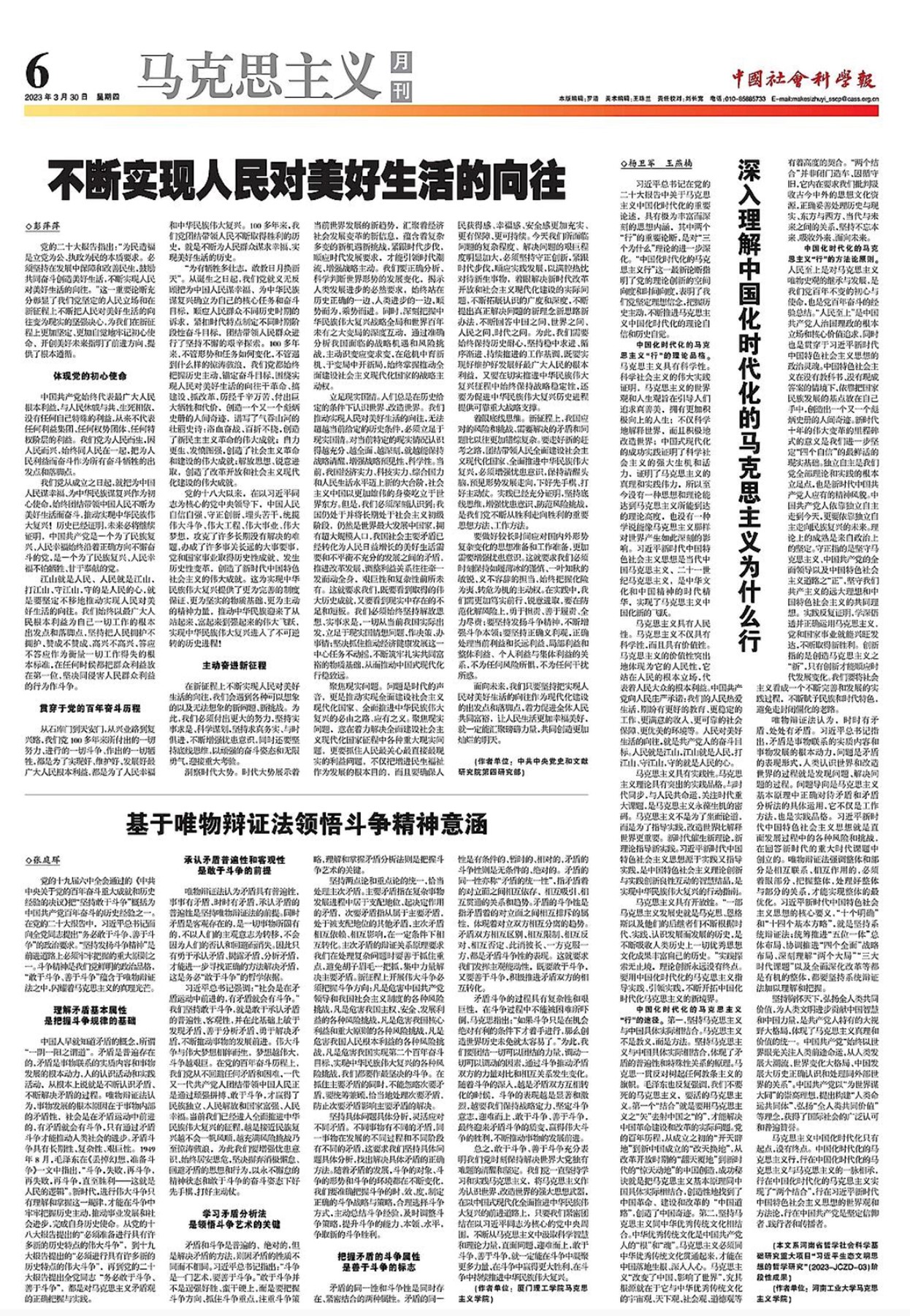 杨卫军教授的理论文章《深刻理解中国化时代化的马克思主义为什么行》。文章指出,习近平总书记在党的二十大报告中关于马克思主义中国化时代化的重要论述,具有极为丰富而深刻的思想内涵,其中两个“行”的重要论断,是对“三个为什么”理论的进一步深化。“中国化时代化的马克思主义行”这一最新论断指明了党的理论创新的空间向度和时间向度,表明了我们党坚定理想信念,把握历史主动,不断推进马克思主义中国化时代化的理论自信和历史自觉。文章提出中国化时代化的马克思主义为什么行,行在其科学性、人民性、实践性、开放性的理论品格、行在“两个结合”的根本途径、行在科学的方法论原则、行在胸怀天下的大格局大视野。