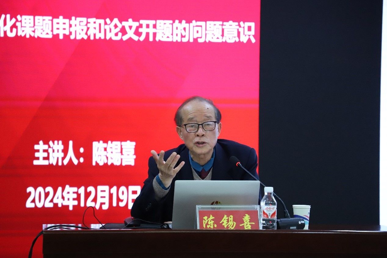 李海涛首先对陈锡喜教授的到来表示热烈欢迎和衷心感谢。随后,陈锡喜教授进行了精彩的学术讲座。他从问题的缘起出发,深入解读了马克思主义的鲜明特点及其在理论研究中的根本任务。在课题申报和论文写作方面,他结合实际案例,详细讲解了选题、学术史梳理、内容论证等关键环节,并提出了一系列切实可行的方法和建议。他特别强调了在课题申报过程中强化问题意识的重要性,指出问题意识是提升课题质量和研究深度的关键。