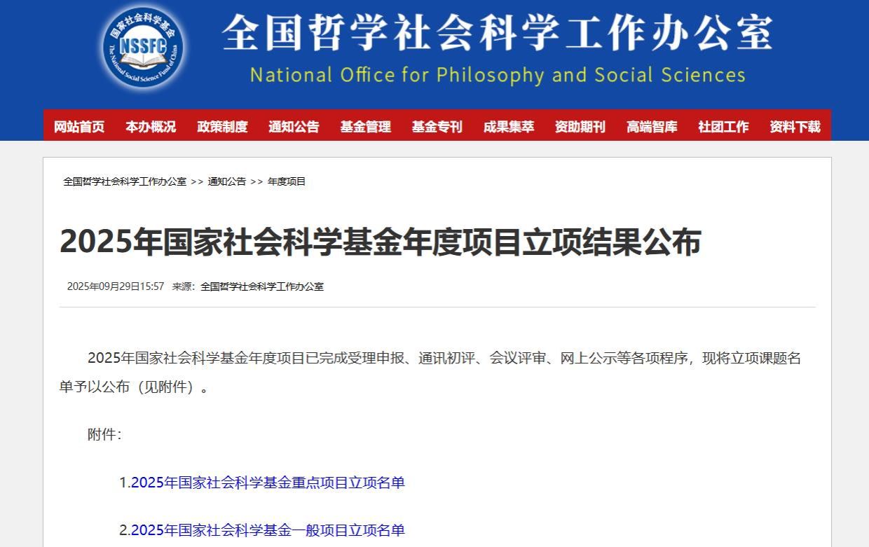 9月29日,全国哲学社会科学工作办公室公布了2025年国家社会科学基金年度项目立项结果,色情视频 获批2项国家社科基金一般项目。