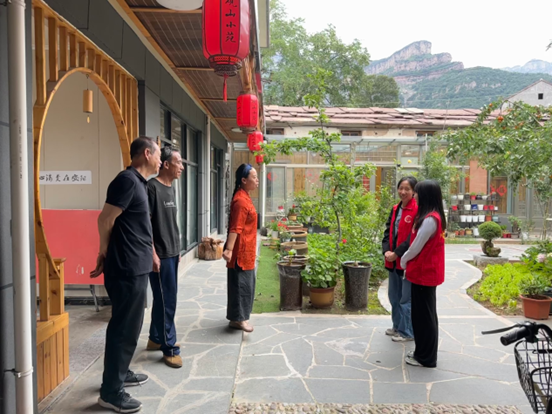 图为团队成员采访当地第一家开办民宿的共产党员