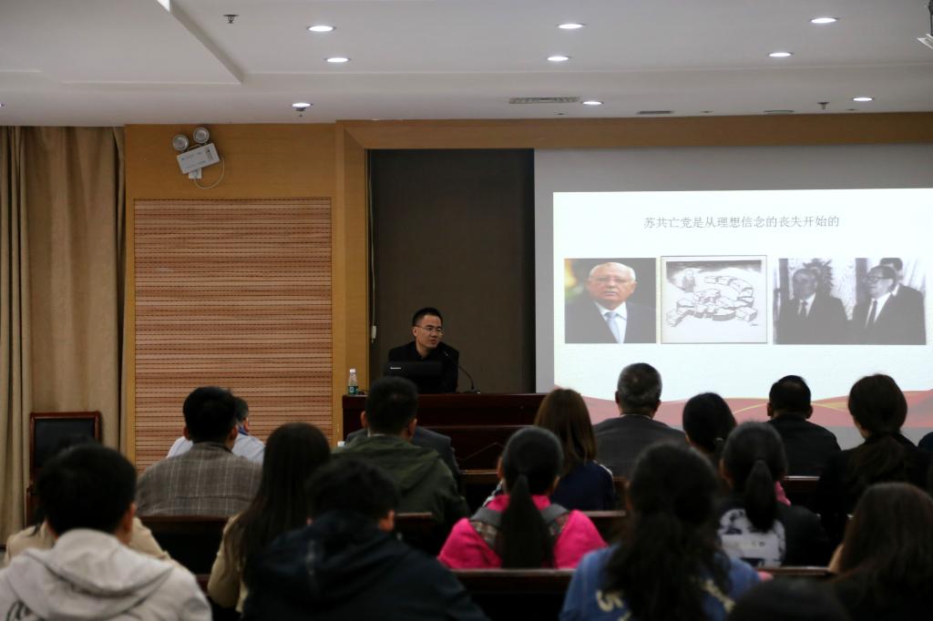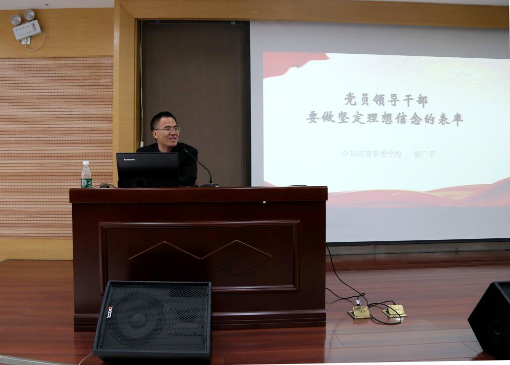 郭广平副教授从坚定的理想信念是中国共产党成功的内在基因、当前部分党员理想信念弱化的一些表现、党员干部理想信念弱化的部分成因、坚定党员干部理想信念的若干思考这四个方面,深入剖析了党员干部理想信念的科学内涵、现实意义。一个个生动鲜活的事例,彰显了革命先辈理想坚定、不畏牺牲、无私奉献的精神,激励着广大党员干部不忘初心、牢记使命,为实现中华民族伟大复兴而努力奋斗。最后,郭广平副教授结合习总书记的要求,提出从抓好思想理论建设这个根本、抓好党性教育这个核心、抓好道德建设这个基础三个方面坚定党员干部的理想信念。